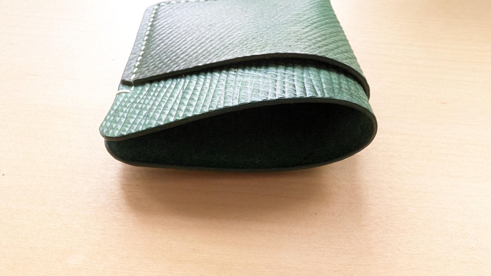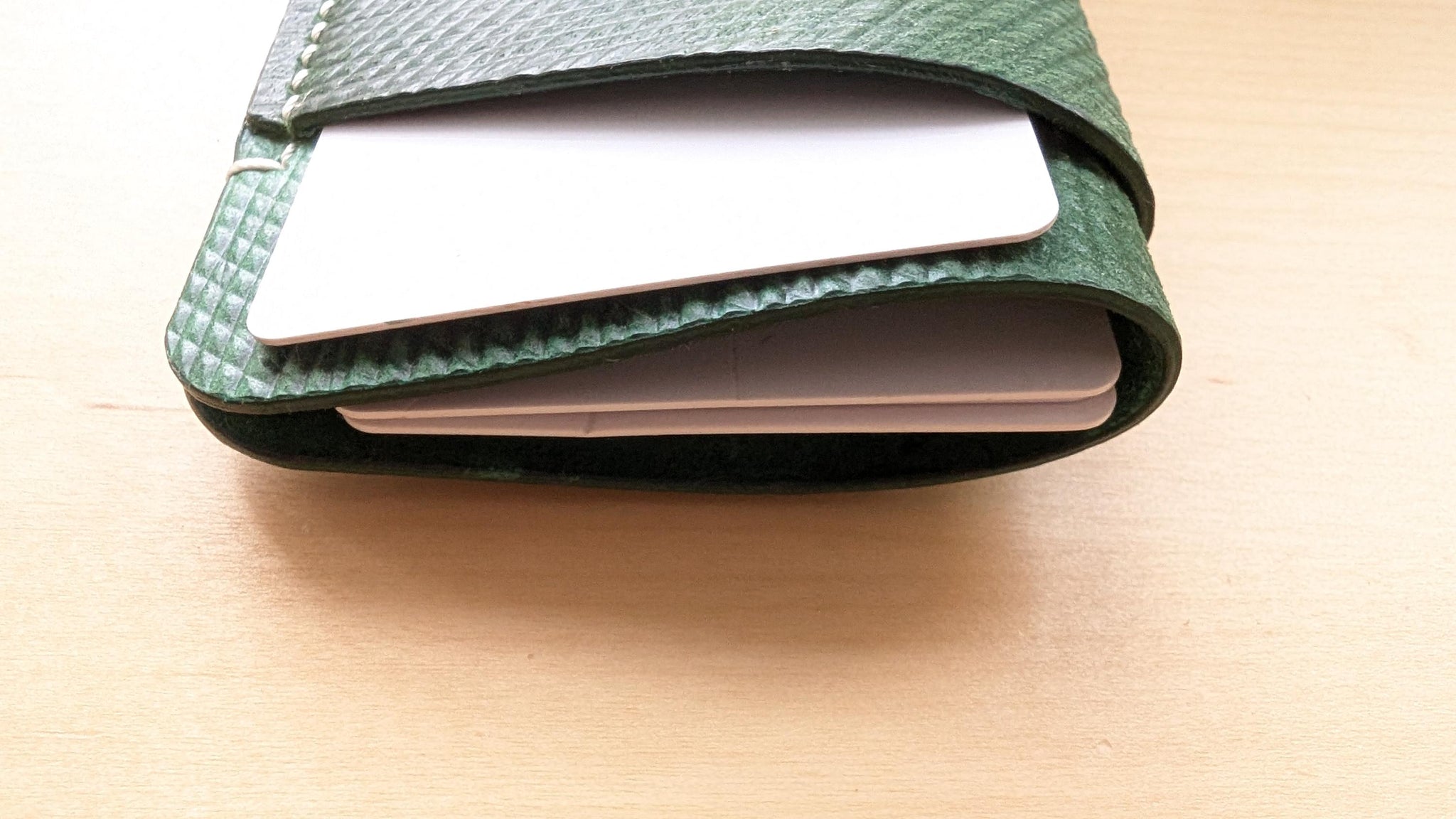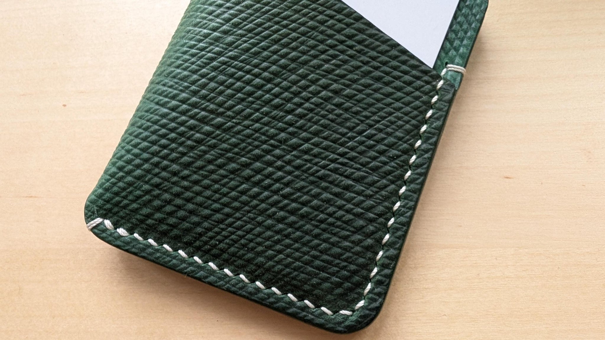 Slim three pocket minimalist wallet can fit 5+ cards and some folded cash. This is a gorgeous wallet. This is just a gorgeous textured piece of shell from Italy and perfect for the shell enthusiast in your life. This leather will develop a more richer color as the years go on.