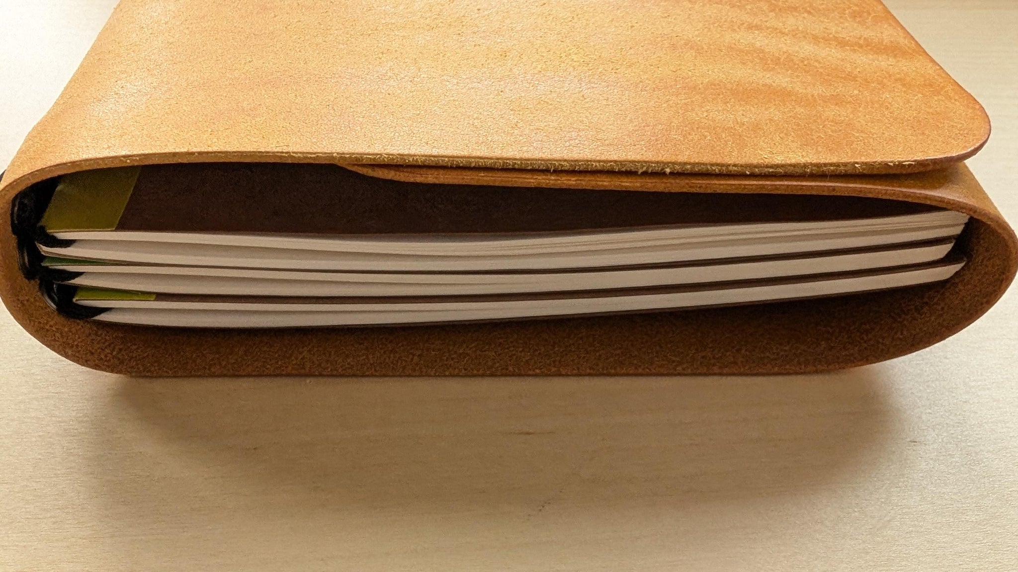 This is an A5 in a Trifold style in Badalassi Carlo full-grain vegetable-tanned leather in a gorgeous golden yellow color.