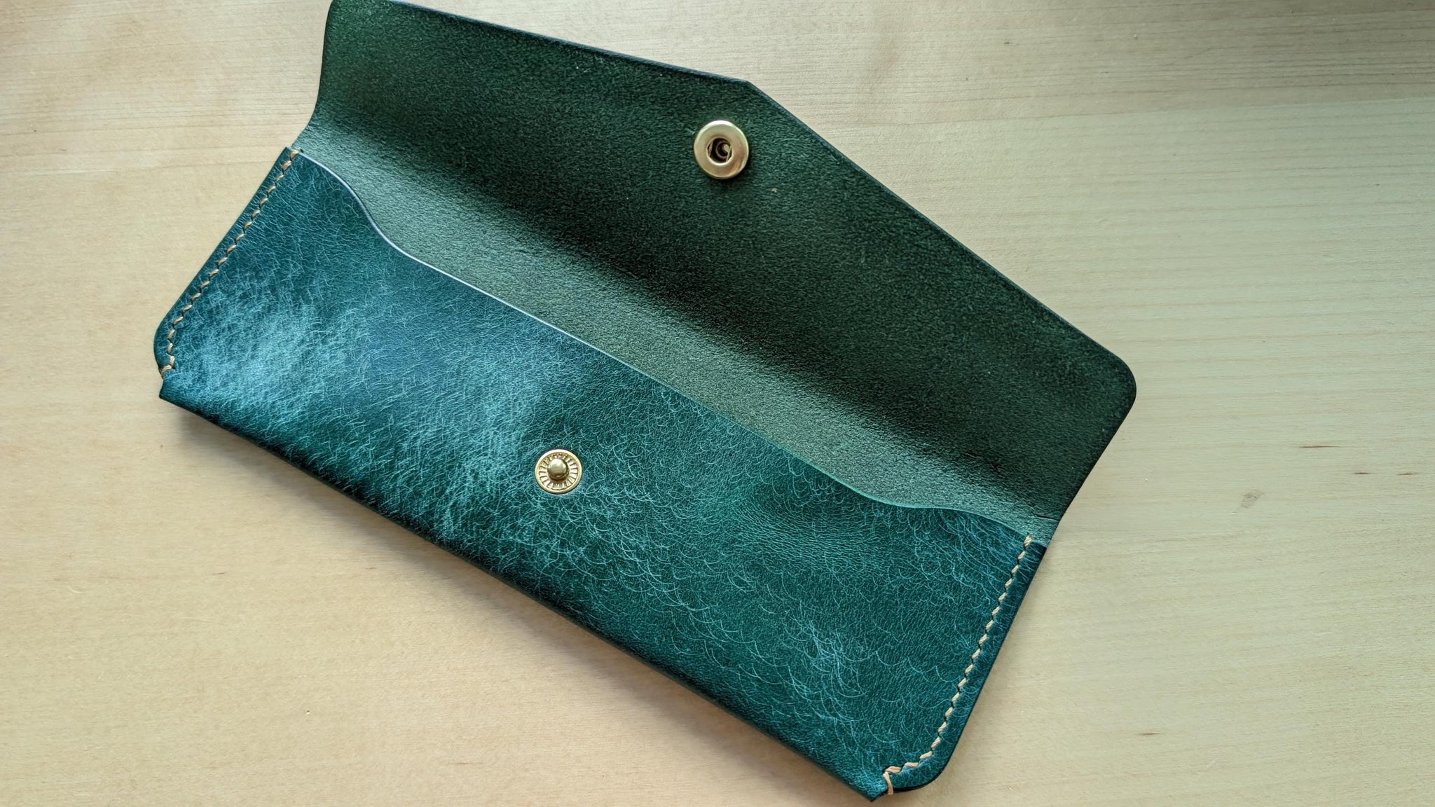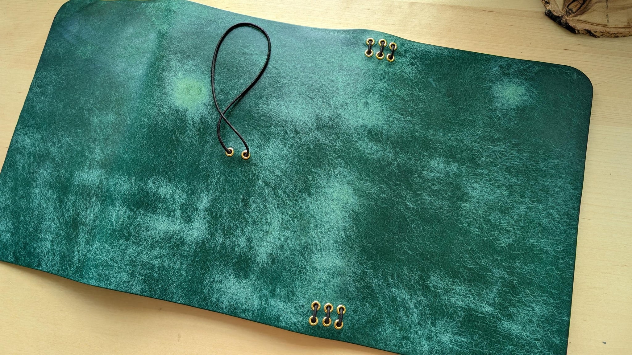All edges are carefully beveled, sanded, and hand-burnished to a smooth, glassy finish, protecting the leather and providing a polished look and feel.