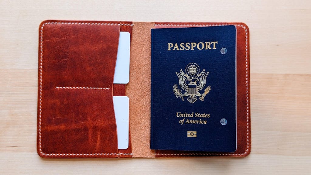 This rugged and reliable Horween leather passport holder. It's made from English Tan Dublin color leather from Horween in Chicago.